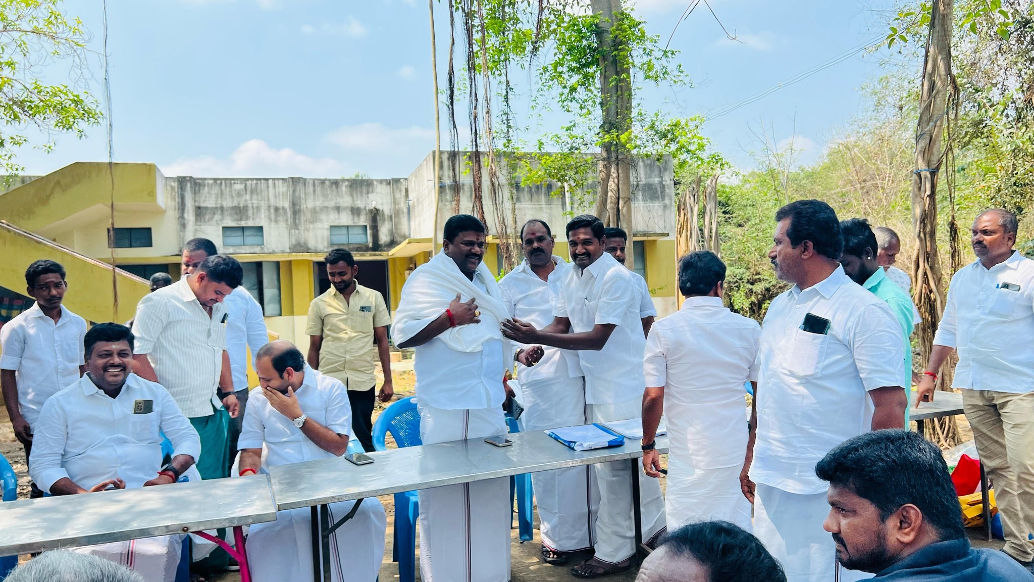 Following the guidance of the Honorable General Secretary, Leader of the Opposition in the Assembly, and Former Chief Minister Edappadi K. Palaniswami, as well as former Minister and Party Organization Secretary Dr. C. Vijayabaskar, MBBS, Dr. Ln. R. V. Palanivel, B.Sc., Secretary, AIADMK MGR Youth Wing, Pudukkottai District, participated in the Booth Committee Advisory Meeting held this morning at Sambattividuthi and Mookkambatti village panchayat under Pudukkottai East Union. Party administrators and volunteers from the district actively took part, and the meeting was conducted successfully under the supervision of the Pudukkottai East Union Party Secretary.