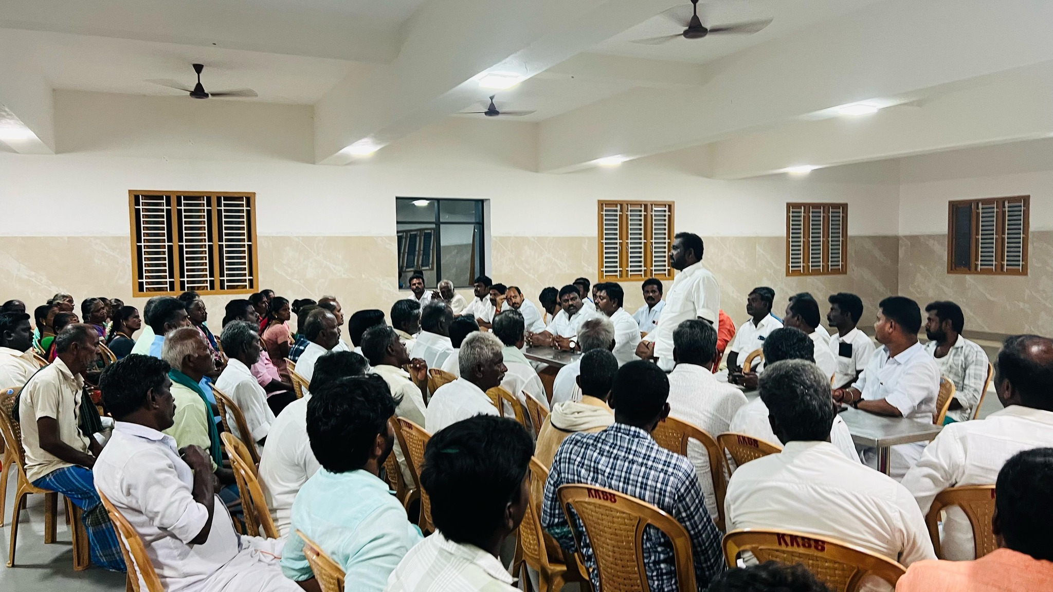 Following the guidance of the Honorable General Secretary, Leader of the Opposition in the Assembly, and Former Chief Minister Edappadi K. Palaniswami, as well as former Minister and Party Organization Secretary Dr. C. Vijayabaskar, MBBS, Dr. Ln. R. V. Palanivel, B.Sc., Secretary, AIADMK MGR Youth Wing, Pudukkottai District, participated in the Booth Committee Advisory Meeting held this evening at B. Matthur, M. Kuluvaipatti Panchayat under Pudukkottai North Union. District party administrators and volunteers actively joined, and the meeting was conducted successfully under the supervision of the Pudukkottai North Union Party Secretary.