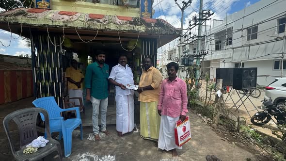 Dr. Ln. R. V. Palanivel, Secretary, AIADMK MGR Youth Wing, Pudukkottai North District, inaugurated the Annadhanam (free food service) during the 54th Annual Poochoriyal Festival of Arulmigu Sri Muthumariamman Temple, located on the southern side of 2nd and 4th Streets, Keela Pudukkottai. Organized by youth, the general public, and friends, the event witnessed Dr. Palanivel commencing the Annadhanam by serving a variety of traditional meals and sharing the moment with devotees, marking a joyful and meaningful occasion.