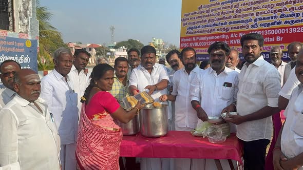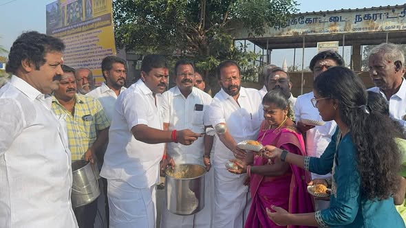On the occasion of the 77th birthday of the revered leader Amma, under the directive of AIADMK General Secretary and Leader of Opposition, Former Chief Minister Edappadi K. Palaniswami, and the guidance of Honourable Former Minister and AIADMK District Secretary Dr. C. Vijayabaskar, the MGR Youth Wing, Pudukkottai North District, organized a grand Annadhanam (food donation) program for the residents at Santharamman Temple Street. The event was successfully conducted with the participation of state, district, and union-level AIADMK officials and Youth Wing leaders. Dr. Ln. R. V. Palanivel, B.Sc., Secretary, AIADMK MGR Youth Wing, Pudukkottai North District, expressed heartfelt gratitude to all the officials and youth leaders who contributed to making the program a memorable and meaningful occasion.