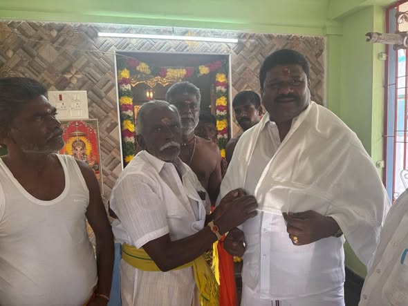 Dr. Ln. R. V. Palanivel, B.Sc., Secretary, AIADMK MGR Youth Wing, Pudukkottai North District, President, Pudukkottai Century Lions Club, and Founder of the Naga Group, participated in the Maha Kumbabishekam (temple consecration) ceremony held at T. Kalapathi, Karambakudi Taluk, Pudukkottai District. His presence contributed to the success and grandeur of the religious event.