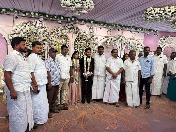 Dr. Ln. R. V. Palanivel, B.Sc., Secretary, AIADMK MGR Youth Wing, Pudukkottai North District, participated in the marriage ceremony at the residence of former Neyveli MLA Mr. Sivasubramani in Cuddalore District. He extended his heartfelt wishes to the couple for a life filled with love, happiness, and prosperity.