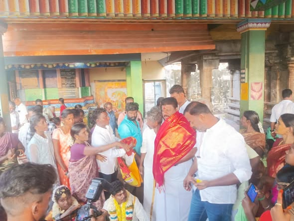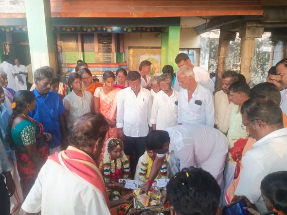 Dr. Ln. R. V. Palanivel, B.Sc., Secretary, AIADMK MGR Youth Wing, Pudukkottai North District, participated in the marriage ceremony of Mr. Ganesan and Ms. Poovayi at Melaponnanviduthi, Karambakudi Union, Pudukkottai District, offered the mangalyam, and conveyed my heartfelt wishes for a happy and prosperous married life.