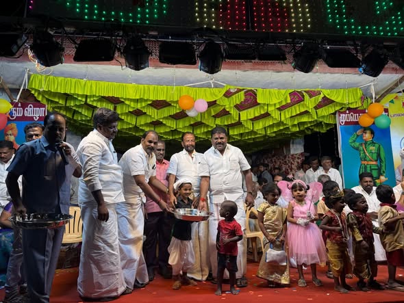 Dr. Ln. R.V. Palanivel B.Sc., participated in the Nehru Yuva Kendra Mega Festival jointly organized by the Youth and Women Welfare Associations at Balan Nagar, Pudukkottai. The event was attended by AIADMK South City Secretary Mr. S.A. Saet, along with A.V.M. Babu, Ibrahim, Suman Kalidas, MTR. Thamilarasan, KRG Pandiyan, Sivayogamalar, Indhu, and other party administrators, who contributed to the success of the program.