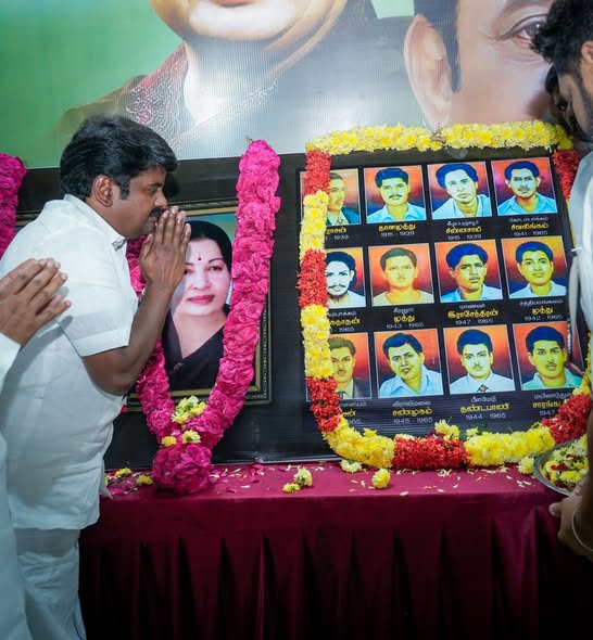 On behalf of the Pudukkottai North and South District AIADMK Student Wings, the Language Martyrs Day was observed through a public tribute meeting held yesterday under the leadership of Former Minister for Public Health Dr. C. Vijayabaskar. The meeting was organized to pay respect and homage to the Language Movement Martyrs, and the tribute event was attended with reverence.