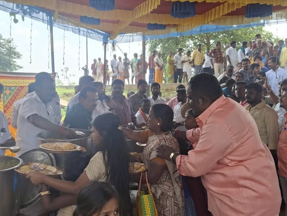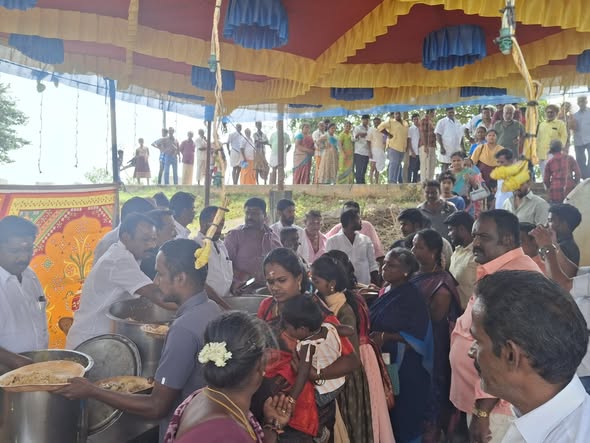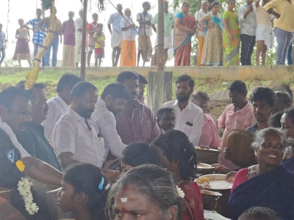 On the occasion of the New Year, a community feast was organized for the residents of Pudukkottai Municipal 14th Ward. The annadhanam, arranged by my brother Vivek, was served to the public. Pudukkottai Municipal South AIADMK Secretary Mr. Saet and party administrators also participated in the event, making it a joyful gathering.