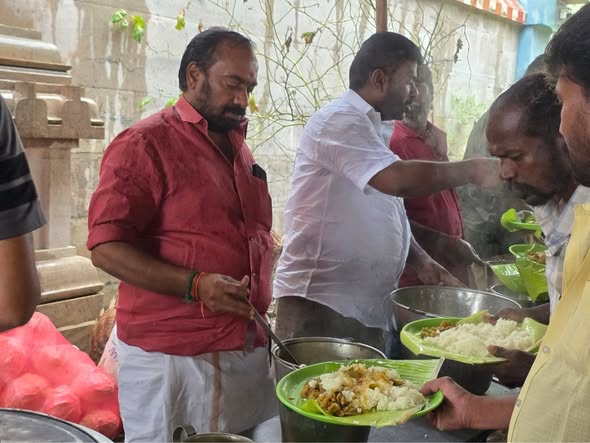 On this day (16.10.2025), Dr. R.V. Palanivelu, B.Sc., Secretary of the AIADMK MGR Youth Wing, Pudukkottai North District, participated in the 48-day Mandala Abhishekam festival held at Arulmigu Sri Selva Vinayagar Temple, located at South Vandanviduthi, Vettanviduthi near Karambakudi in Pudukkottai District, and had the divine darshan