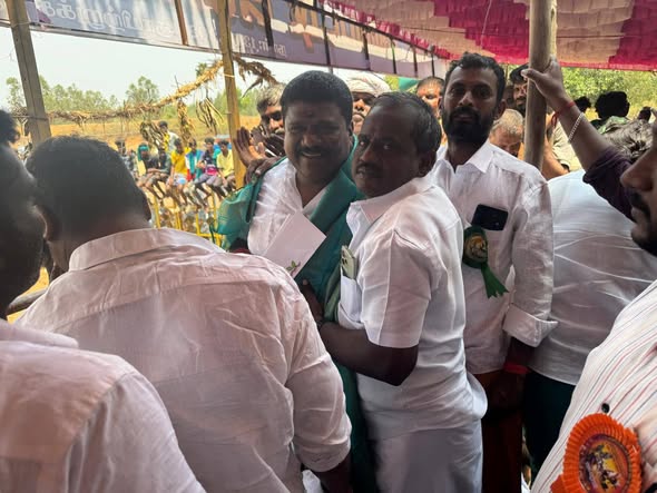 A grand Jallikattu festival was held at Meenampatti village, Karambakudi Taluk, Pudukkottai District. During the event, special prizes were presented to all participating bulls and players, marking a memorable moment of the traditional sport. The occasion was attended by Dr. Ln. R.V. Palanivelu, B.Sc., Secretary of the AIADMK MGR Youth Wing, Pudukkottai (Rural) District.