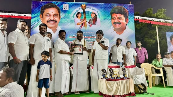 On the occasion of the 71st birthday of the Honorable AIADMK General Secretary, Mr. Edappadi K. Palaniswami, a 10th Annual Five-A-Side Floodlight Football Tournament was organized by the Pudukkottai City Amma Peravai, Pudukkottai City AIADMK (South), and the Green Eagle Football Team. Dr. Ln. R. V. Palanivel, B.Sc., Secretary, AIADMK MGR Youth Wing, Pudukkottai North District, and President, Pudukkottai Century Lions Club, participated in the event and encouraged the players, marking the occasion with his presence.