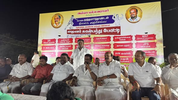 Dr. Ln. R. V. Palanivel, B.Sc., Secretary, AIADMK MGR Youth Wing, Pudukkottai District, and President, Pudukkottai Century Lions Club, participated in the South India-wide memorial seven-a-side football tournament held in honor of Ayya Pallavarayar and organized in memory of Mr. Muthumarthandan, extending his support and blessings to the event.