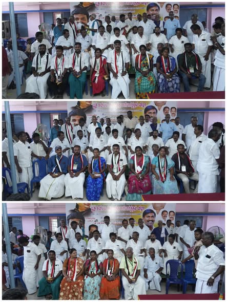 On 08-05-2025, Dr. R. V. Palanivel, B.Sc., Secretary, AIADMK MGR Youth Wing, Pudukkottai North District, participated in the Booth Committee Field Review Meeting conducted across the panchayats of Vennaval Kudi, Vengidakulam, Techinapuram, Kothakkottai, and Kovilur-Arayapatti. The meeting was chaired by Former Minister, Party Organizational Secretary, and Pudukkottai North District Party Secretary Dr. C. Vijayabhaskar, along with Party Front Leader Amma Peravai Joint Secretary and Pudukkottai District Coordinator Mr. N. Sathan Prabhakar, Ex-MLA. Dr. R. V. Palanivel attended and collaborated with party administrators during the proceedings.