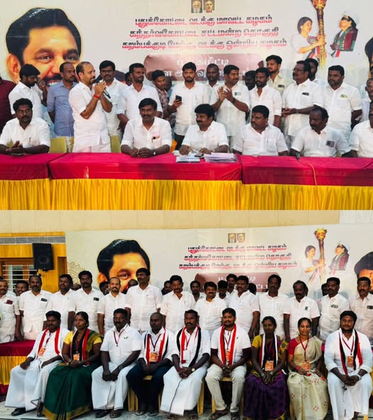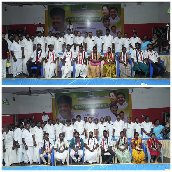 Dr. R. V. Palanivel, B.Sc., Secretary, AIADMK MGR Youth Wing, Pudukkottai North District, participated in the Booth Committee Field Review Meeting held across Ayyangadu, Mazhaiyur, Thuwar, Puduppatti, Vettanviduthi, and Karambakkudi. The meeting was chaired by Former Minister, Party Organizational Secretary, and Pudukkottai North District Party Secretary Dr. C. Vijayabhaskar, along with Party Front Leader Amma Peravai Joint Secretary and Pudukkottai District Coordinator Mr. N. Sathan Prabhakar, Ex-MLA. Dr. R. V. Palanivel actively collaborated with the party administrators during the event.