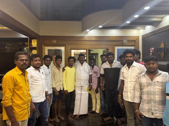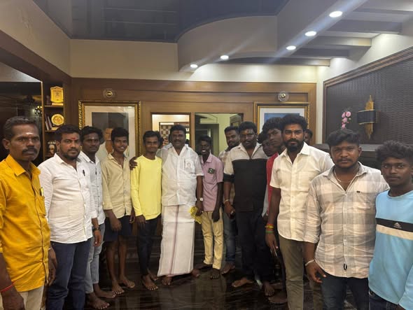 Dr. Ln. R. V. Palanivel, B.Sc., Secretary, AIADMK MGR Youth Wing, Pudukkottai District, attended the invitation presentation for the 23rd Annual Poochery Festival and the 19th Six-Course Annadhanam organized by B.M.M Youths at Sri Bala Muthu Mariamman Temple in Balan Nagar, conveying his greetings and best wishes