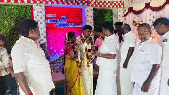 On 07-04-2025, Dr. Ln. R. V. Palanivel, B.Sc., Secretary, AIADMK MGR Youth Wing, Pudukkottai District, attended the wedding ceremony at the residence of Mr. S. Thyagarajan at Mazhaiyur, Karambakkudi Taluk, and conveyed his heartfelt wishes and blessings to the family on the auspicious occasion.