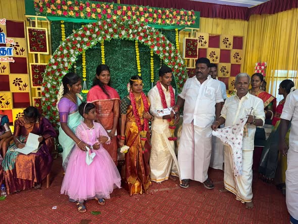 Today, Dr. Ln. R. V. Palanivel, B.Sc., Secretary, AIADMK MGR Youth Wing, Pudukkottai District, along with AIADMK party administrators, friends, and relatives, attended the wedding ceremony and related celebrations at the respective residence, making the occasion joyful and memorable.